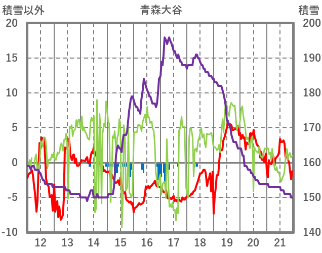 | 日 | 時 | 気温 | 降水 | 風向/風速 | 日照 | 積雪 | 降雪 |