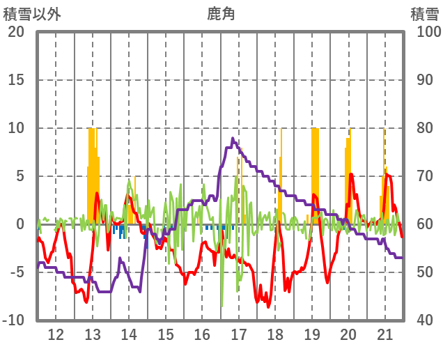 | 日 | 時 | 気温 | 降水 | 風向/風速 | 日照 | 積雪 | 降雪 |