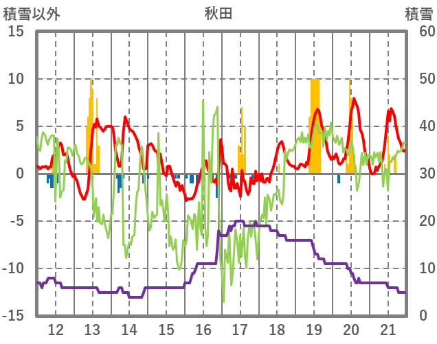 | 日 | 時 | 気温 | 降水 | 風向/風速 | 日照 | 積雪 | 降雪 |