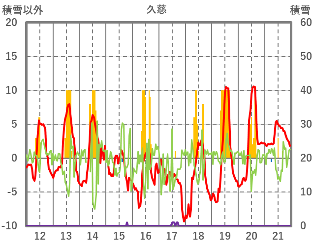 | 日 | 時 | 気温 | 降水 | 風向/風速 | 日照 | 積雪 | 降雪 |