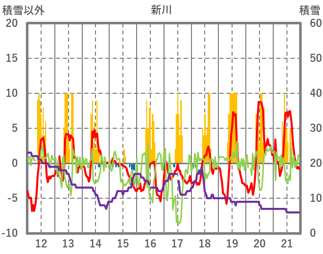 | 日 | 時 | 気温 | 降水 | 風向/風速 | 日照 | 積雪 | 降雪 |