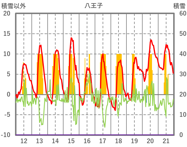 | 日 | 時 | 気温 | 降水 | 風向/風速 | 日照 | 積雪 | 降雪 |