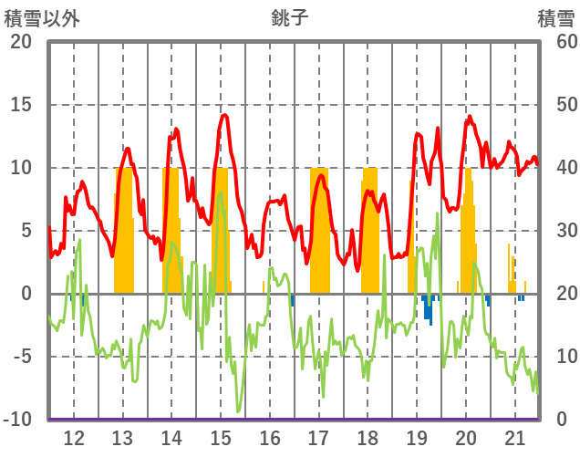 | 日 | 時 | 気温 | 降水 | 風向/風速 | 日照 | 積雪 | 降雪 |