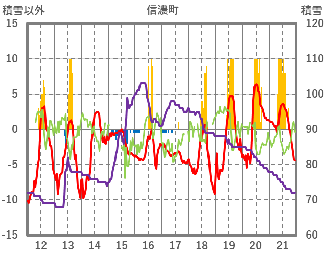 | 日 | 時 | 気温 | 降水 | 風向/風速 | 日照 | 積雪 | 降雪 |