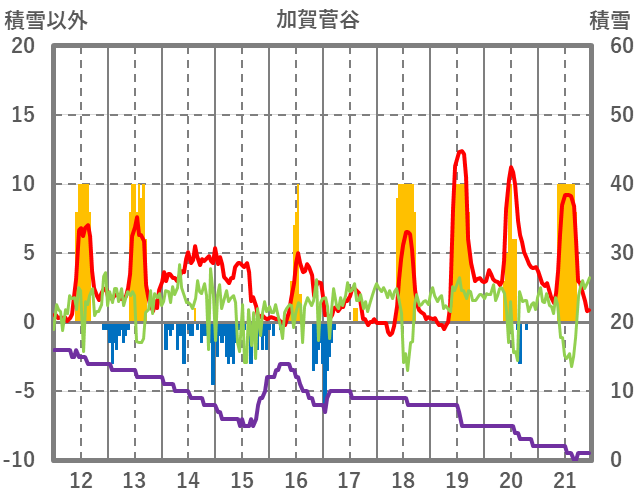 | 日 | 時 | 気温 | 降水 | 風向/風速 | 日照 | 積雪 | 降雪 |