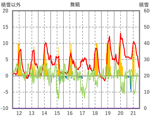 | 日 | 時 | 気温 | 降水 | 風向/風速 | 日照 | 積雪 | 降雪 |