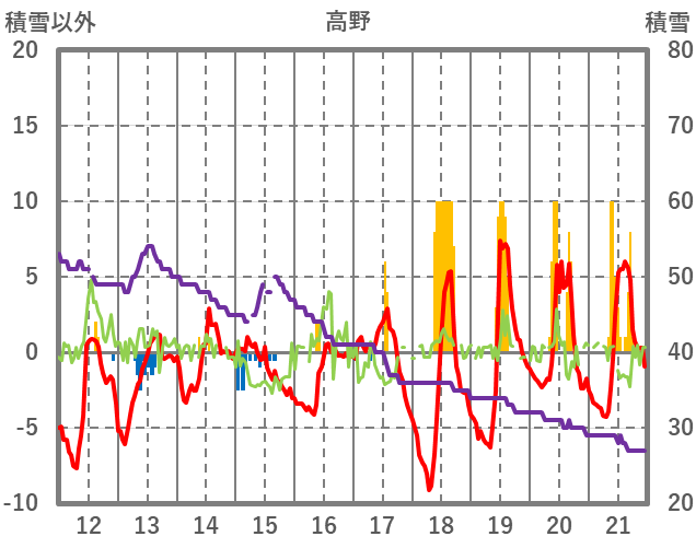 | 日 | 時 | 気温 | 降水 | 風向/風速 | 日照 | 積雪 | 降雪 |