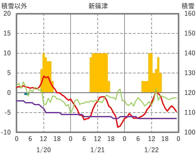| 日 | 時 | 気温 | 降水 | 風向/風速 | 日照 | 積雪 | 降雪 |