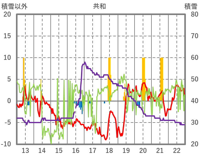 | 日 | 時 | 気温 | 降水 | 風向/風速 | 日照 | 積雪 | 降雪 |