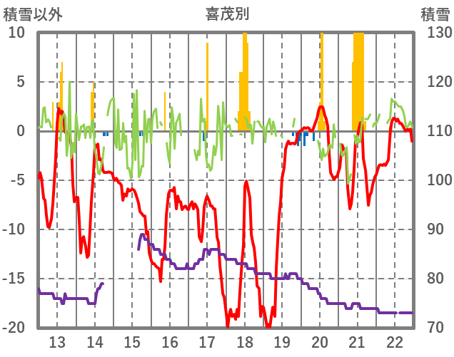 | 日 | 時 | 気温 | 降水 | 風向/風速 | 日照 | 積雪 | 降雪 |