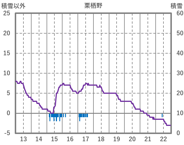 | 日 | 時 | 気温 | 降水 | 風向/風速 | 日照 | 積雪 | 降雪 |