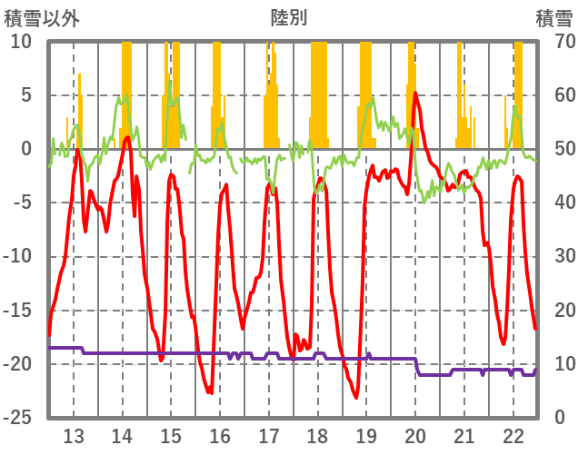 | 日 | 時 | 気温 | 降水 | 風向/風速 | 日照 | 積雪 | 降雪 |