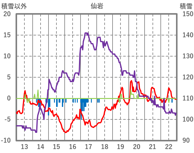 | 日 | 時 | 気温 | 降水 | 風向/風速 | 日照 | 積雪 | 降雪 |
