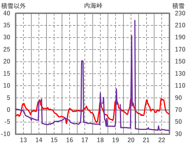 | 日 | 時 | 気温 | 降水 | 風向/風速 | 日照 | 積雪 | 降雪 |