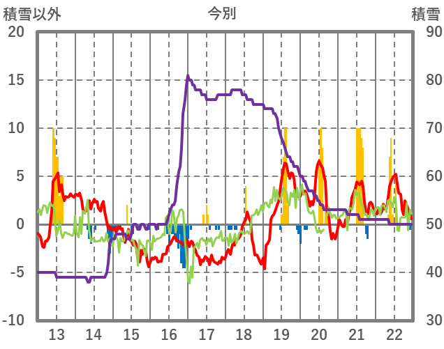 | 日 | 時 | 気温 | 降水 | 風向/風速 | 日照 | 積雪 | 降雪 |