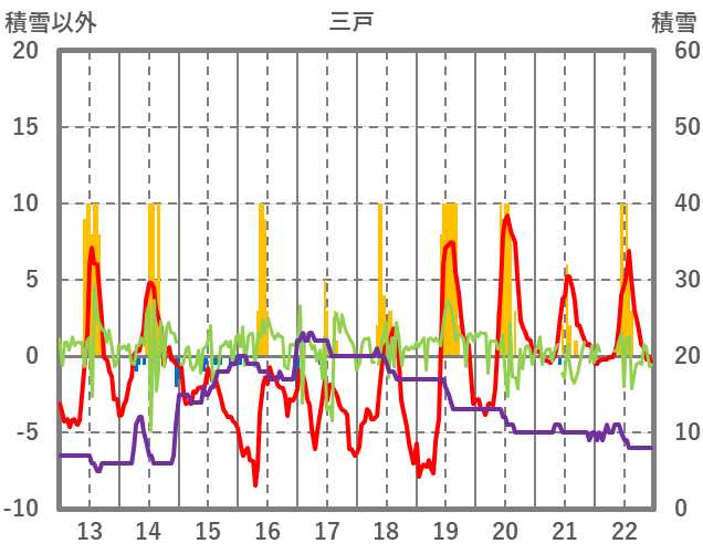 | 日 | 時 | 気温 | 降水 | 風向/風速 | 日照 | 積雪 | 降雪 |