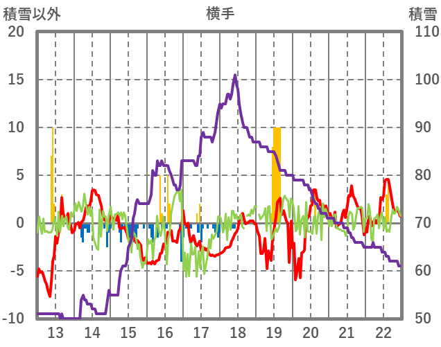 | 日 | 時 | 気温 | 降水 | 風向/風速 | 日照 | 積雪 | 降雪 |
