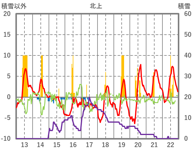 | 日 | 時 | 気温 | 降水 | 風向/風速 | 日照 | 積雪 | 降雪 |