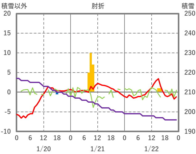 | 日 | 時 | 気温 | 降水 | 風向/風速 | 日照 | 積雪 | 降雪 |