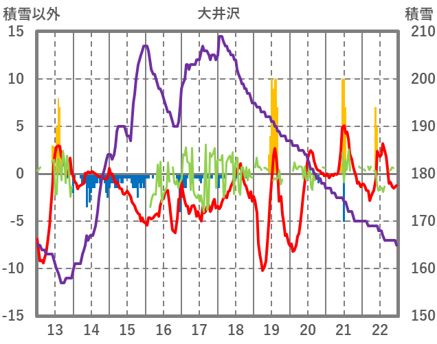 | 日 | 時 | 気温 | 降水 | 風向/風速 | 日照 | 積雪 | 降雪 |
