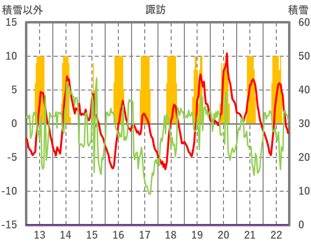 | 日 | 時 | 気温 | 降水 | 風向/風速 | 日照 | 積雪 | 降雪 |