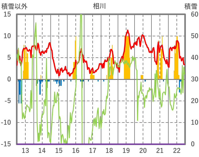 | 日 | 時 | 気温 | 降水 | 風向/風速 | 日照 | 積雪 | 降雪 |