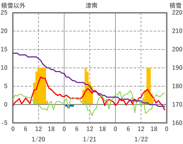 | 日 | 時 | 気温 | 降水 | 風向/風速 | 日照 | 積雪 | 降雪 |
