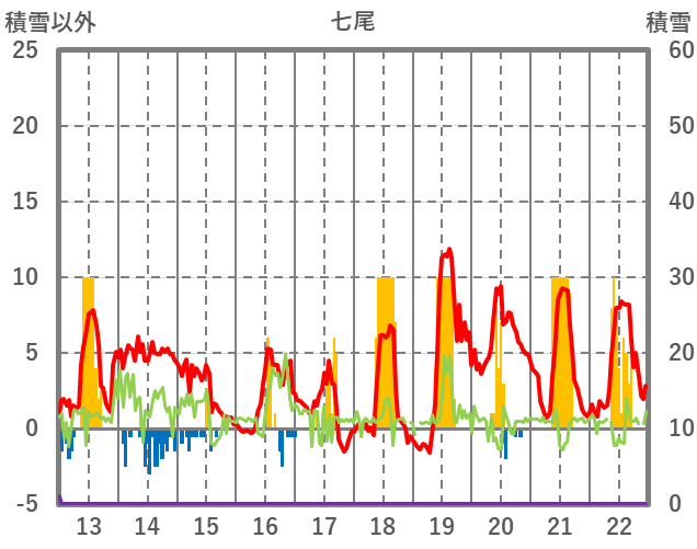 | 日 | 時 | 気温 | 降水 | 風向/風速 | 日照 | 積雪 | 降雪 |