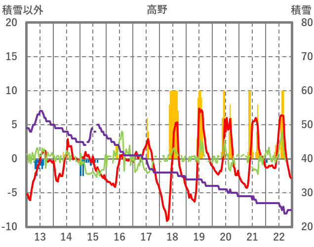 | 日 | 時 | 気温 | 降水 | 風向/風速 | 日照 | 積雪 | 降雪 |