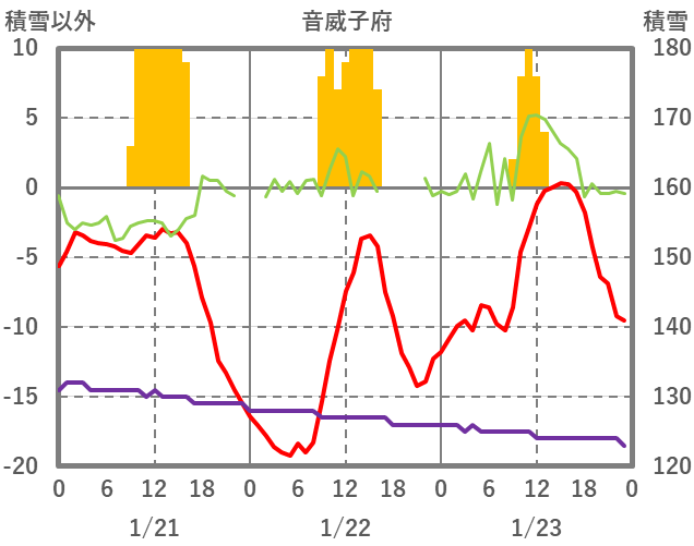 | 日 | 時 | 気温 | 降水 | 風向/風速 | 日照 | 積雪 | 降雪 |