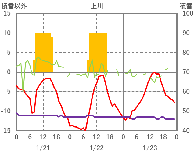 | 日 | 時 | 気温 | 降水 | 風向/風速 | 日照 | 積雪 | 降雪 |