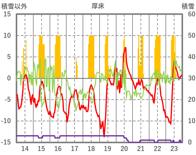| 日 | 時 | 気温 | 降水 | 風向/風速 | 日照 | 積雪 | 降雪 |