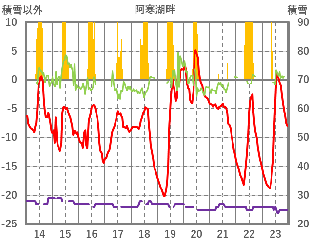 | 14 | 23 | -9.1 | 0 | NNW/0.4 | 0 | 29 | 0 |