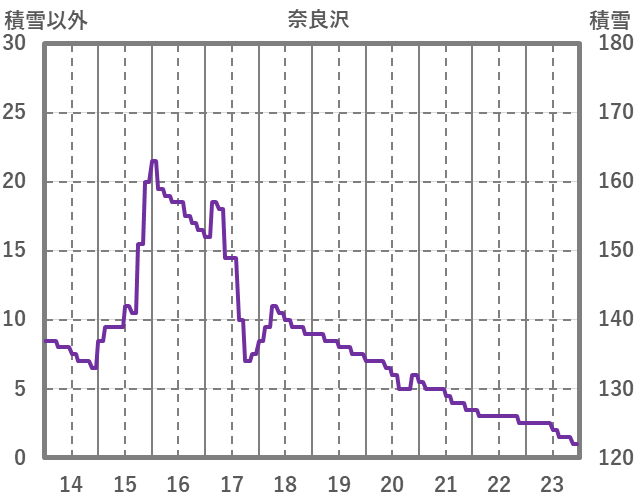 | 日 | 時 | 気温 | 降水 | 風向/風速 | 日照 | 積雪 | 降雪 |