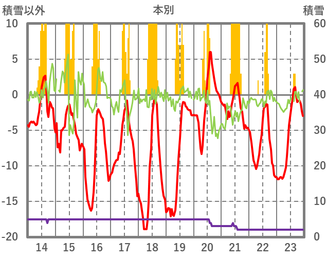| 日 | 時 | 気温 | 降水 | 風向/風速 | 日照 | 積雪 | 降雪 |