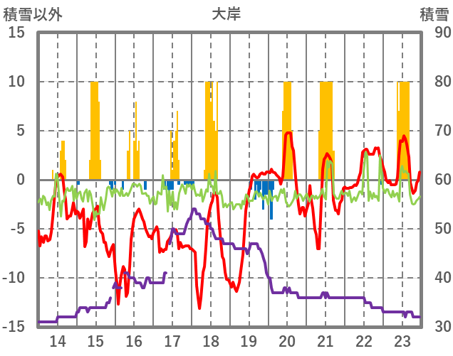 | 日 | 時 | 気温 | 降水 | 風向/風速 | 日照 | 積雪 | 降雪 |