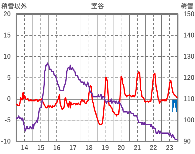 | 日 | 時 | 気温 | 降水 | 風向/風速 | 日照 | 積雪 | 降雪 |