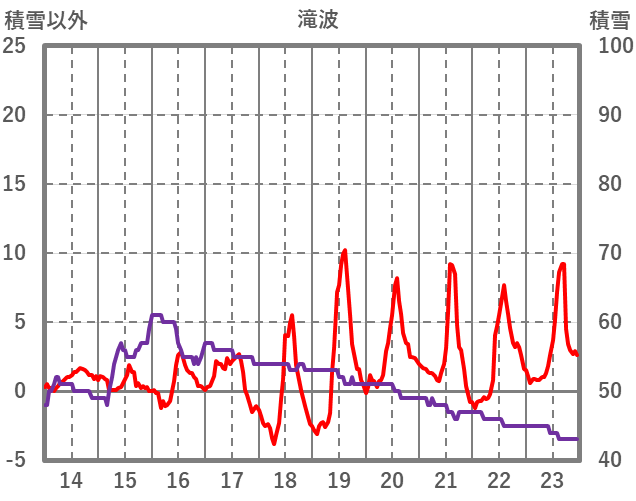| 日 | 時 | 気温 | 降水 | 風向/風速 | 日照 | 積雪 | 降雪 |