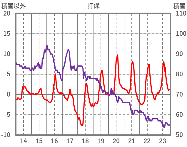 | 日 | 時 | 気温 | 降水 | 風向/風速 | 日照 | 積雪 | 降雪 |