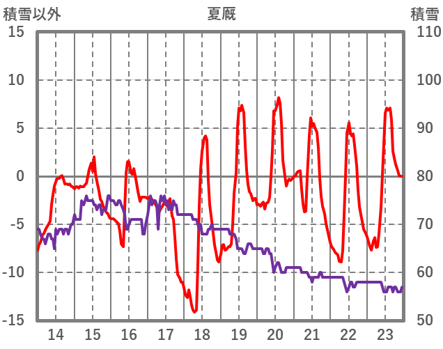 | 日 | 時 | 気温 | 降水 | 風向/風速 | 日照 | 積雪 | 降雪 |