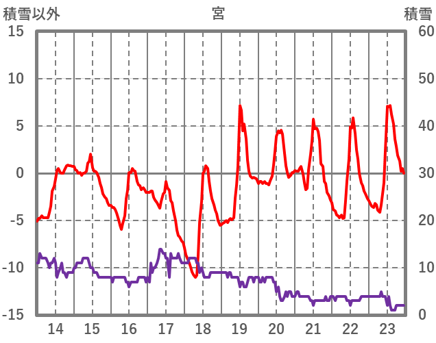 | 日 | 時 | 気温 | 降水 | 風向/風速 | 日照 | 積雪 | 降雪 |