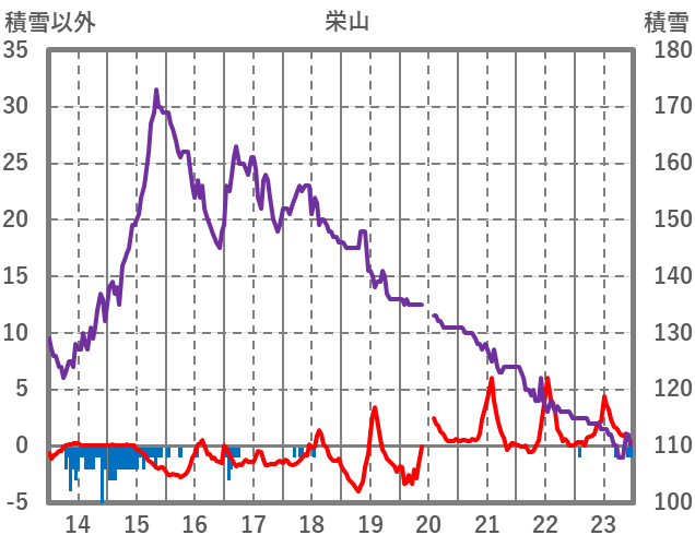 | 日 | 時 | 気温 | 降水 | 風向/風速 | 日照 | 積雪 | 降雪 |