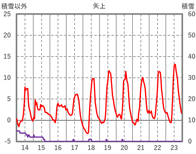 | 日 | 時 | 気温 | 降水 | 風向/風速 | 日照 | 積雪 | 降雪 |