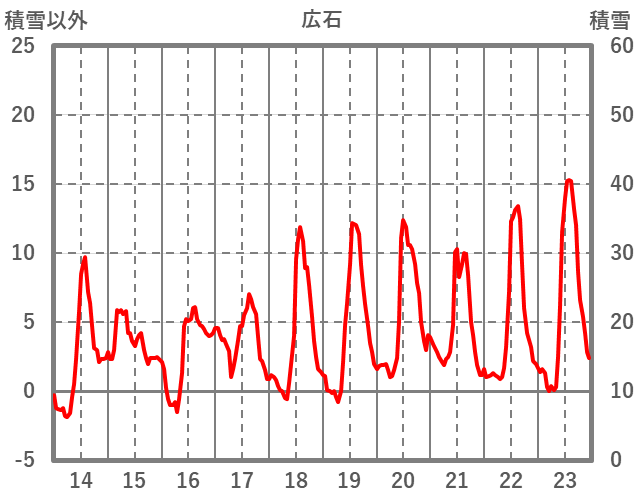 | 日 | 時 | 気温 | 降水 | 風向/風速 | 日照 | 積雪 | 降雪 |