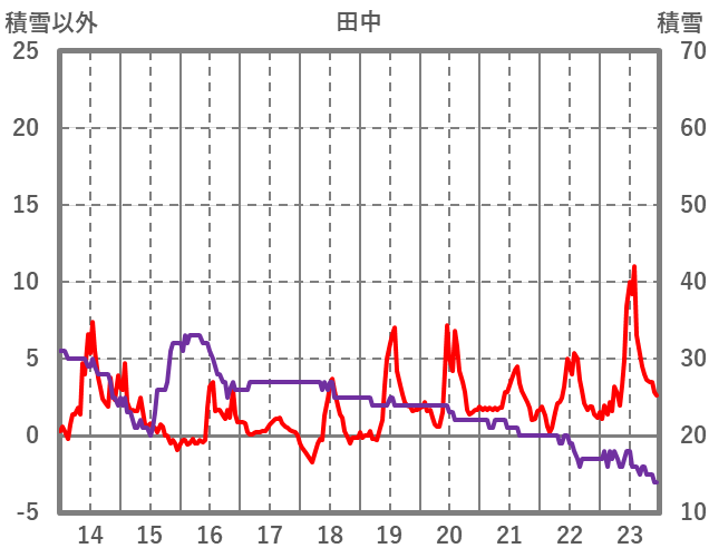 | 日 | 時 | 気温 | 降水 | 風向/風速 | 日照 | 積雪 | 降雪 |