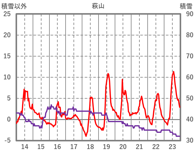 | 日 | 時 | 気温 | 降水 | 風向/風速 | 日照 | 積雪 | 降雪 |