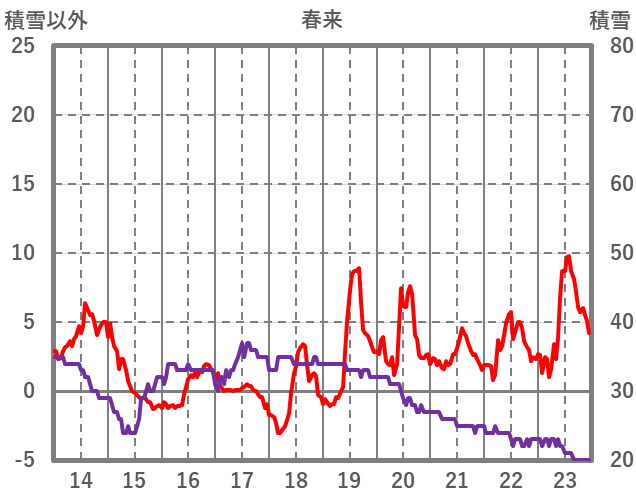 | 日 | 時 | 気温 | 降水 | 風向/風速 | 日照 | 積雪 | 降雪 |