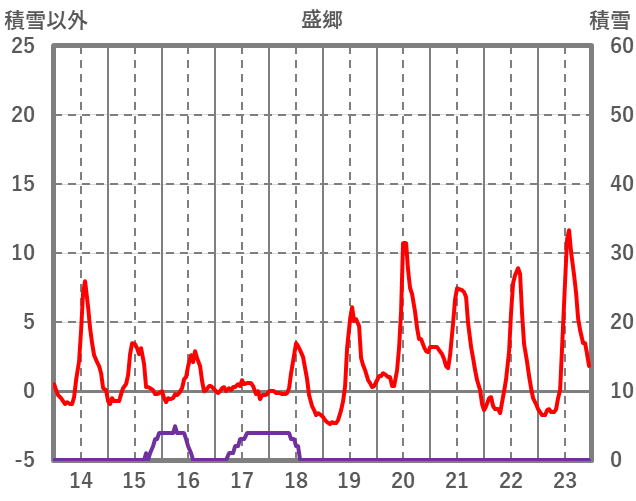 | 日 | 時 | 気温 | 降水 | 風向/風速 | 日照 | 積雪 | 降雪 |