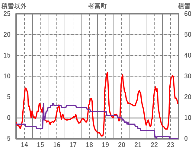 | 日 | 時 | 気温 | 降水 | 風向/風速 | 日照 | 積雪 | 降雪 |