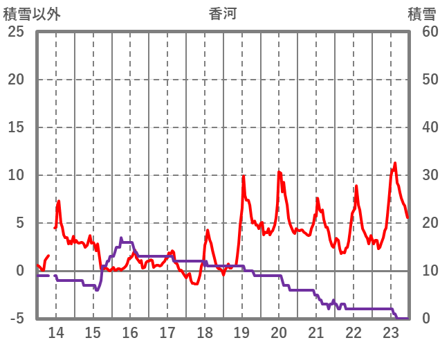 | 日 | 時 | 気温 | 降水 | 風向/風速 | 日照 | 積雪 | 降雪 |